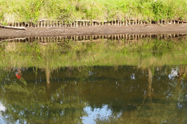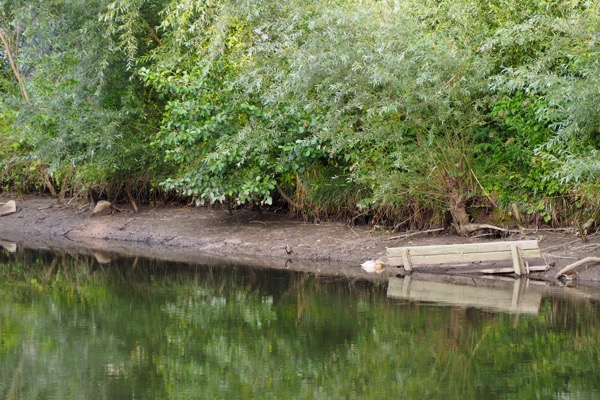 Uferbereich bei Absenkung der Werre um 0,5m - schwebende Stege